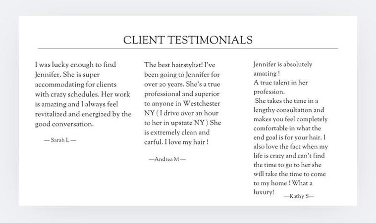 In addition to offering the best in modern and traditional hair services, Jennifer also provides rejuvenating spa facial treatments. Facial treatments are personalized for each clients needs, from deep cleaning using steam, microcurrent, red light therapy , lymphatic massage and finished with customized serums. Her commitment to understand each client's unique style and preferences allows her to create and execute personalized looks and treatments that perfectly complements their personality, lifestyle and needs. Making her a highly sought-after professional mobile hairstylist.